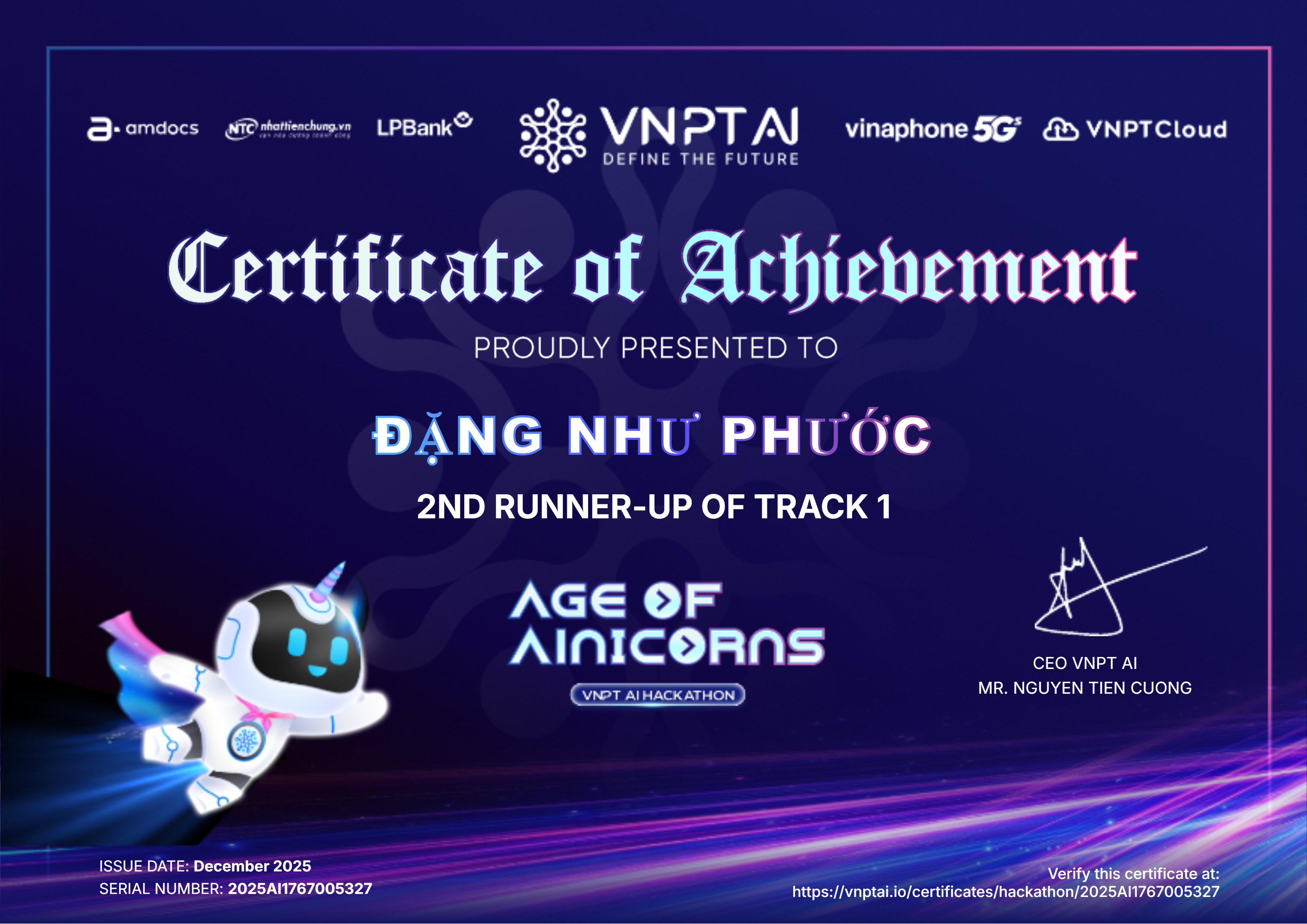 VNPT AI Hackathon 2025 | Leader of SAVINAI | 2nd Runner-up Prize