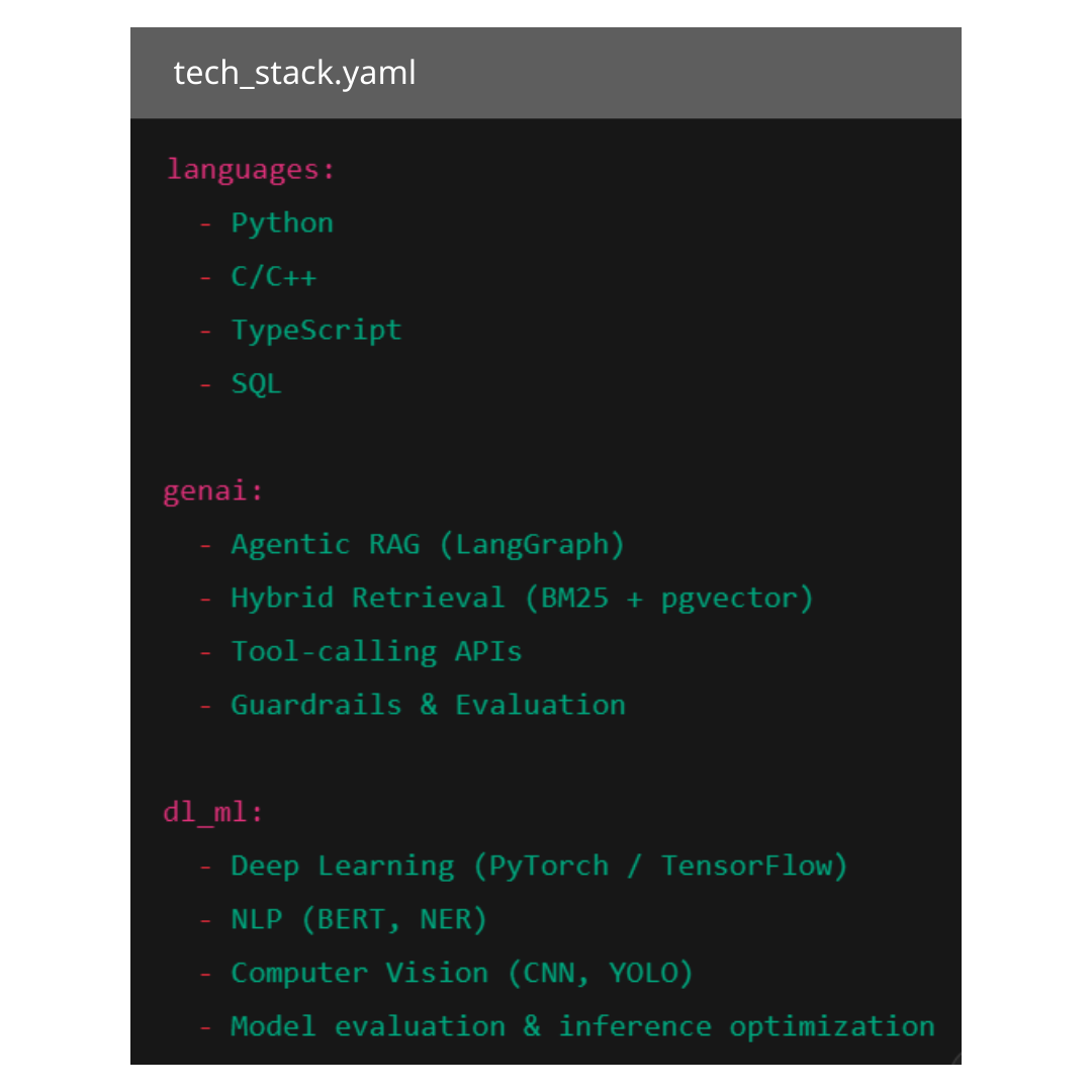 - Implemented Self-Reflective/Corrective RAG (SAAR) with pgvector + BM25 hybrid retrieval, ACL /metadata /effective-date filtering, and controlled query rewrite + retries