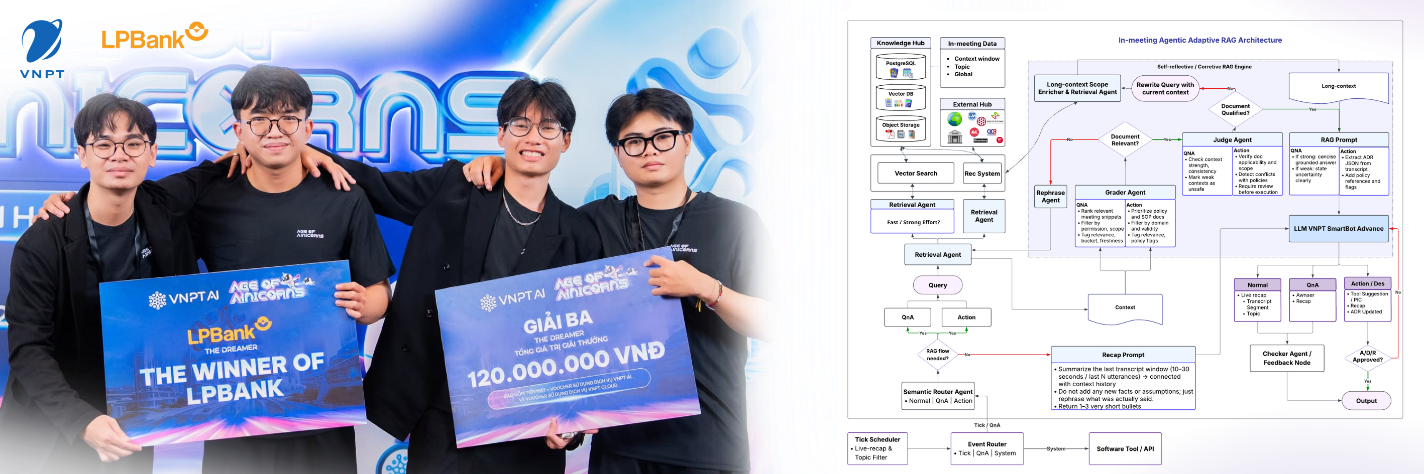 - Streaming Integration: Co-designed REST + WebSocket API handshake with VNPT Senior Engineers to trigger per-endpoint meeting events and stream audio -> ASR -> transcript events into the AI pipeline reliably